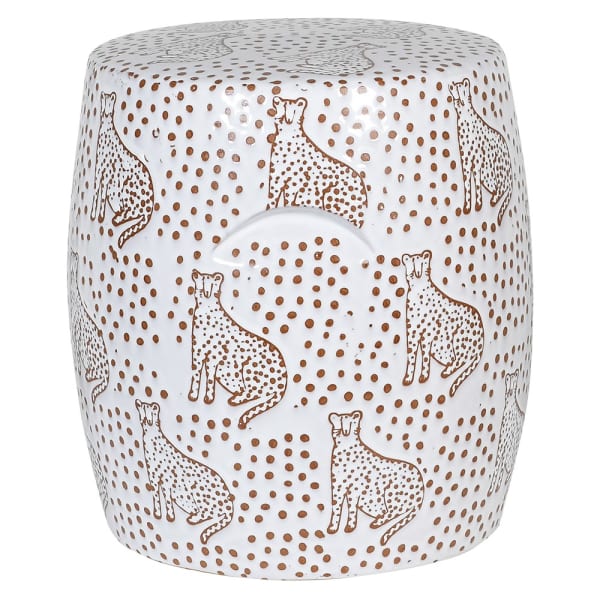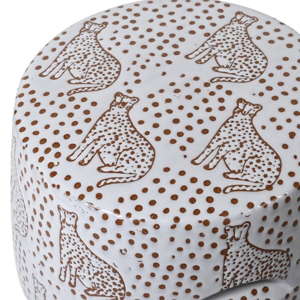 Leopard Ceramic Stool - White and Brown Seat with Wildcat Motif