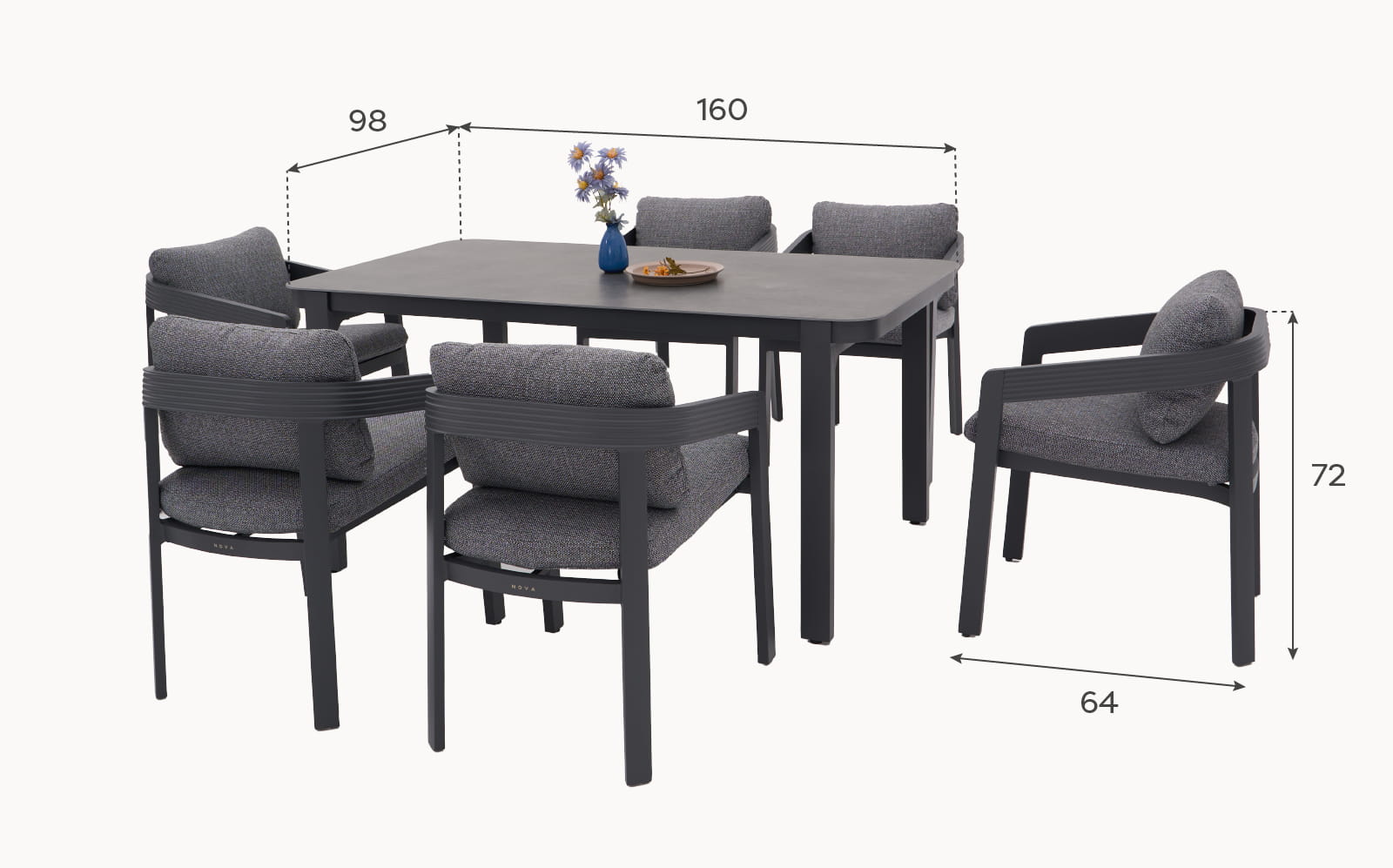 Chairs: 64 x 64 x 72 cm