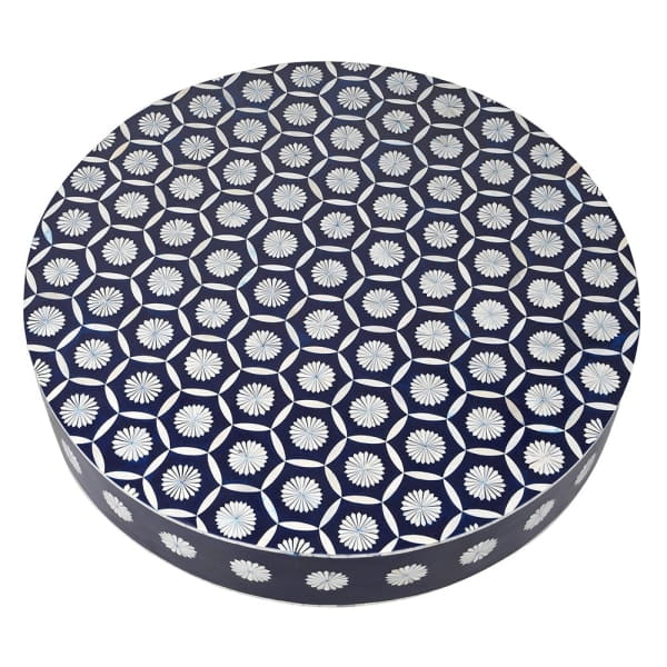 Belize Blue Round Bone Inlay Coffee Table, 100 cm – Black, White and Gold Geometric Design