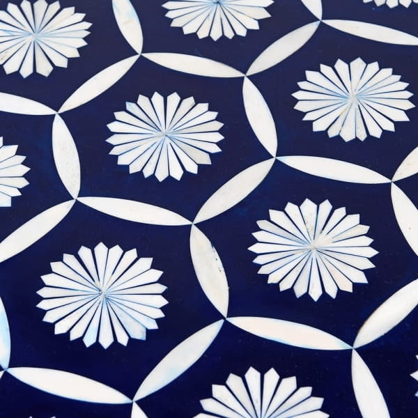 Belize Blue combines practical everyday function with decorative appeal. It is designed for customers who want more than a standard living room coffee table and are looking for a piece with a distinctive visual identity. Hand-crafted detail, bone inlay workmanship, carefully selected materials and a generously sized top all help this table stand out from more conventional designs.