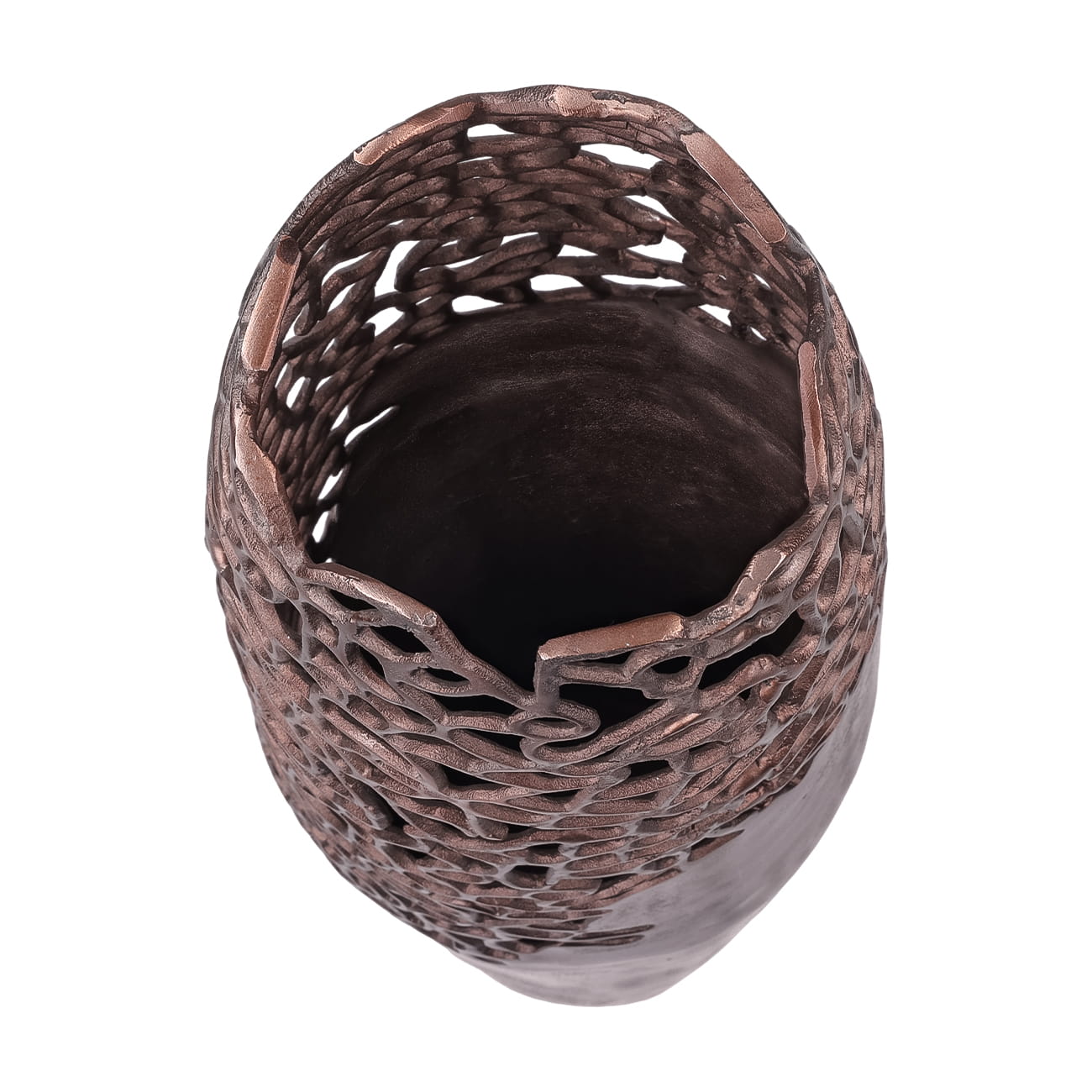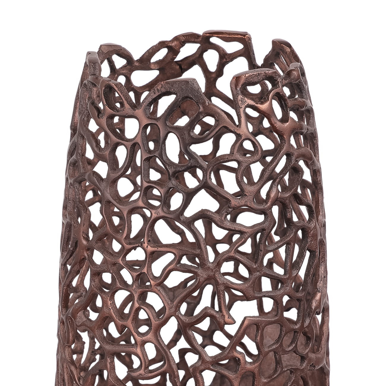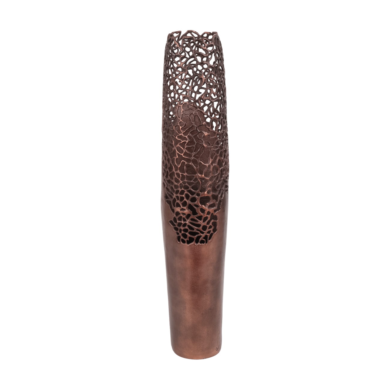 Crafted entirely from high-quality aluminium and hand-painted in a warm bronze finish, this tall decorative vase exudes luxury. The glossy metallic surface catches the light beautifully, while the handmade openwork design adds a unique textural element. Each vase is one-of-a-kind, offering a refined balance of elegance and craftsmanship.