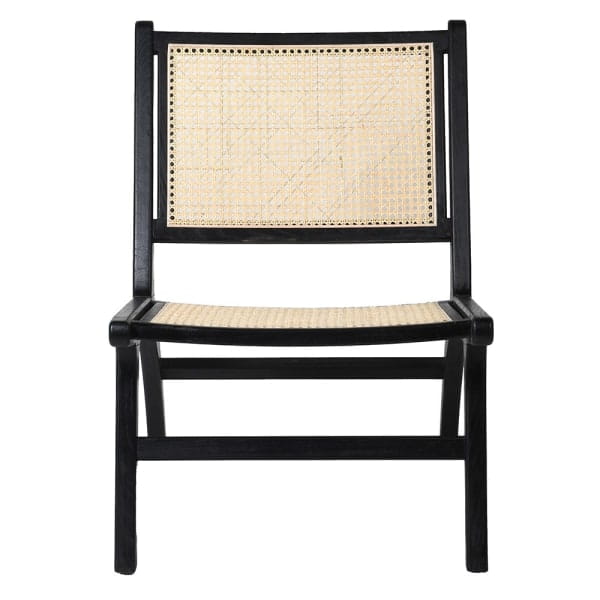 This modern rattan armchair is the perfect choice for interiors where natural materials meet contemporary design. The combination of solid elm wood in an elegant black finish with light, natural rattan creates a refined and timeless look that adds warmth and character to any space.