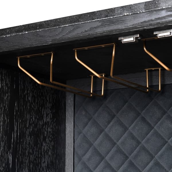 The two internal drawers make the Enderby cabinet more practical than a simple drinks cupboard. Use them for cocktail accessories, corkscrews, napkins, coasters, bottle openers and smaller items you want to keep close to hand. The shelves provide space for bottles and glassware, helping you create a polished and organised home bar area.