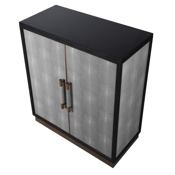 Enderby II Low Two-Door Drinks Cabinet in Grey Shagreen and Oak, 111cm