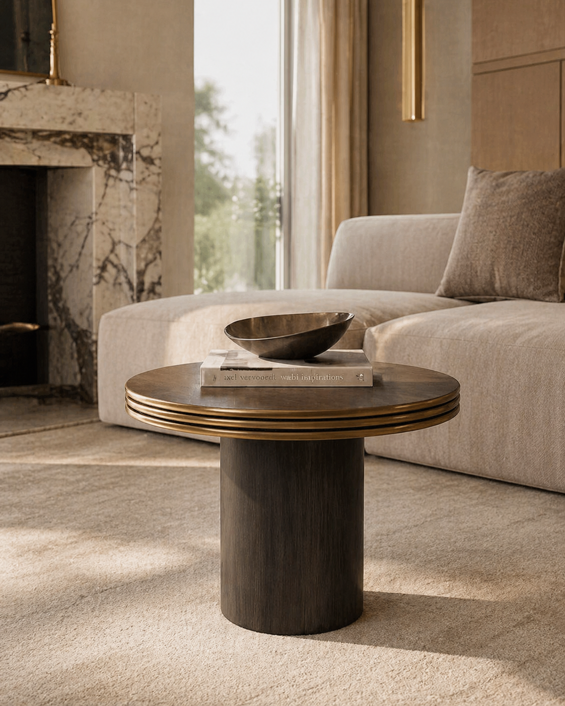It pairs well with velvet sofas, leather armchairs, textured rugs, floor lamps and accessories in gold, black, beige, dark wood or warm neutral tones.