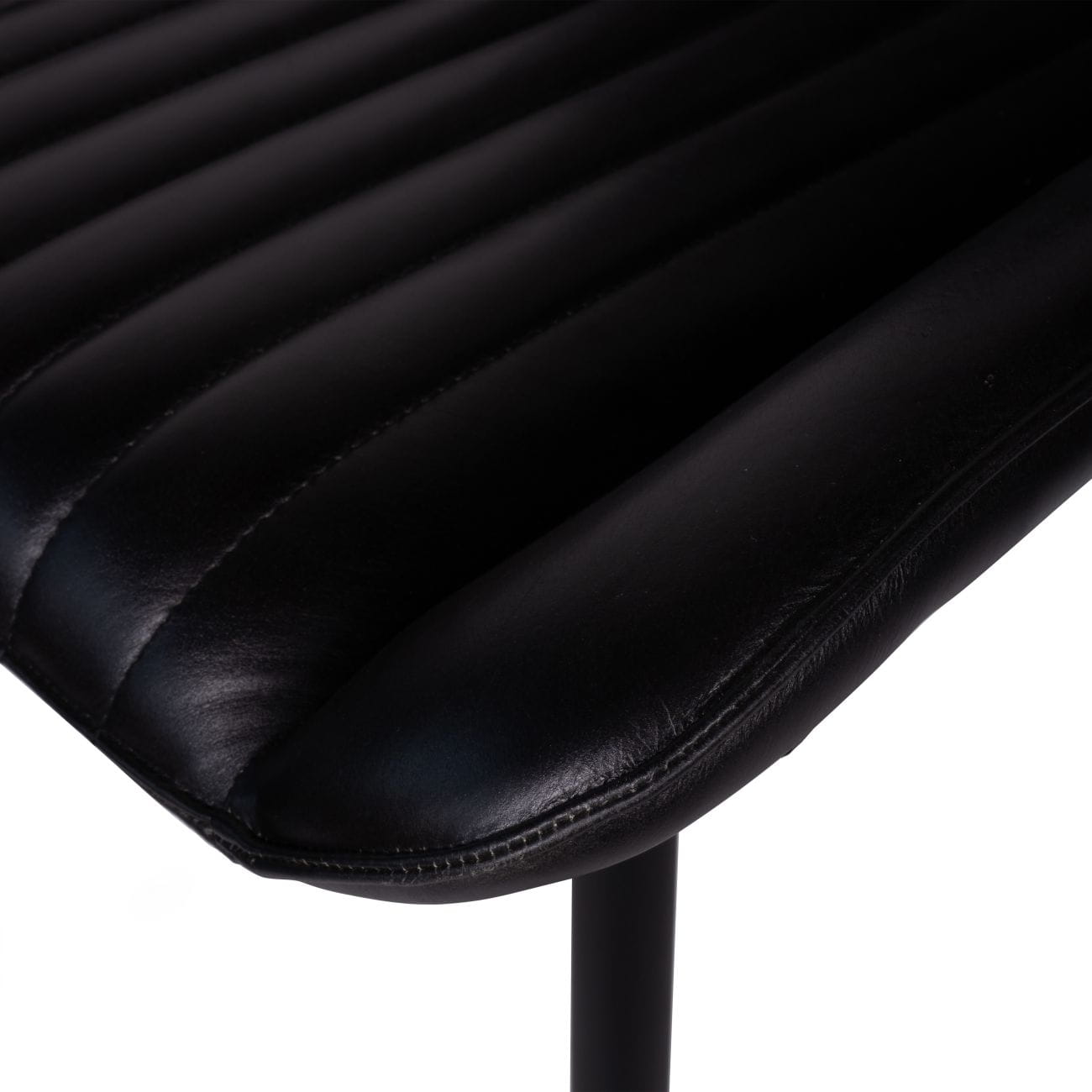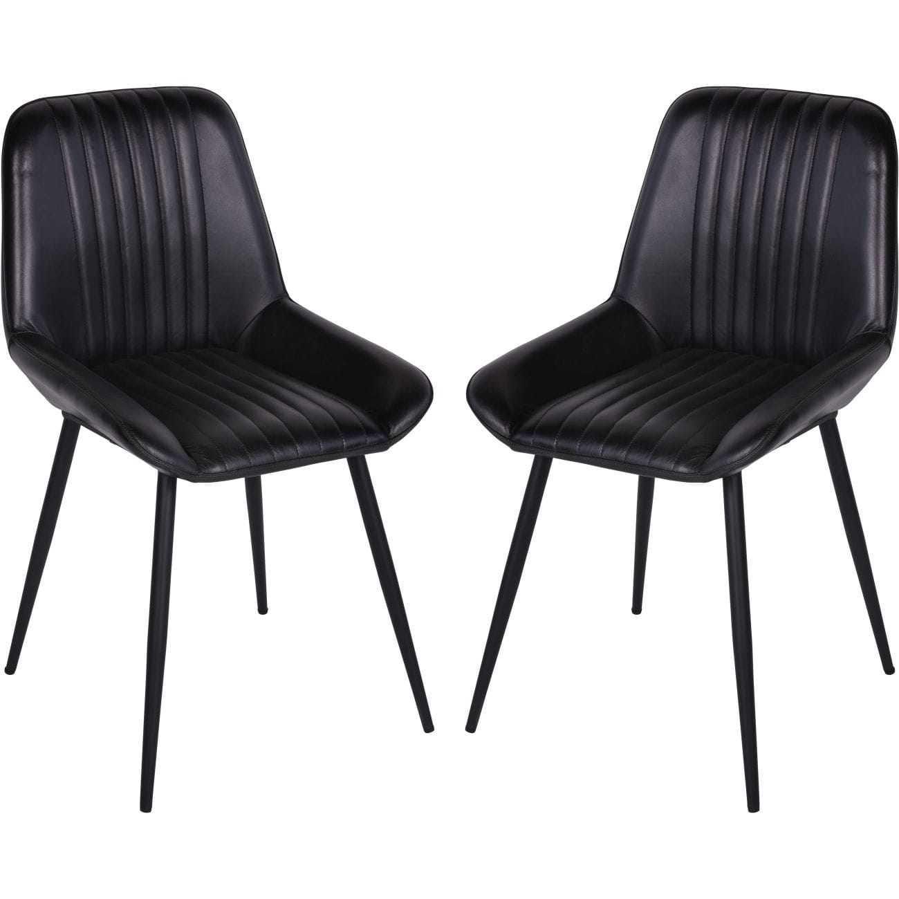 This pair of black dining chairs is upholstered in premium leather, meticulously hand-fitted into a seemingly simple construction made from black powder-coated stainless steel. These leather dining chairs are sure to become your new favourite interior decor pieces.