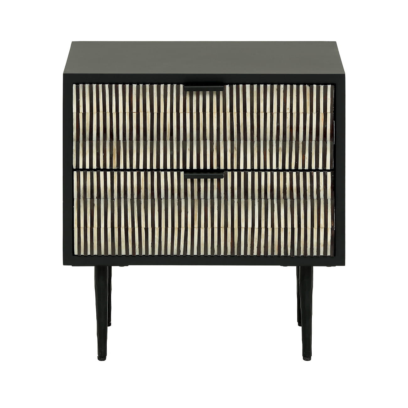 Merida Bedside Table – Designer Black & Ivory Bone Inlay Nightstand