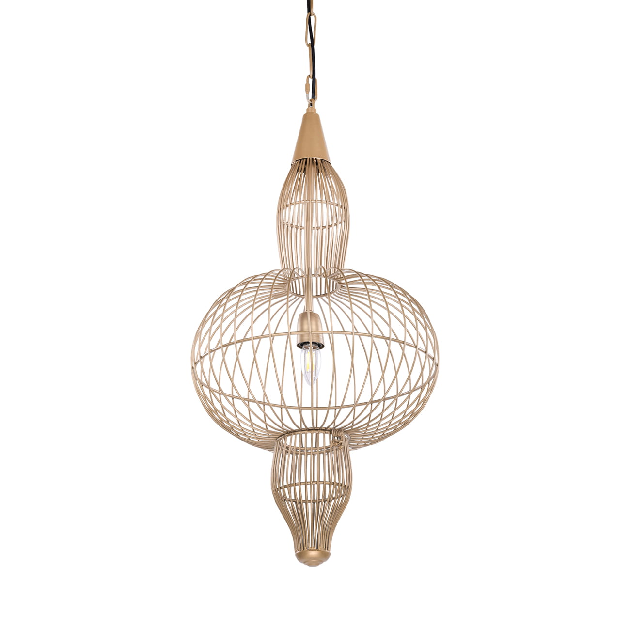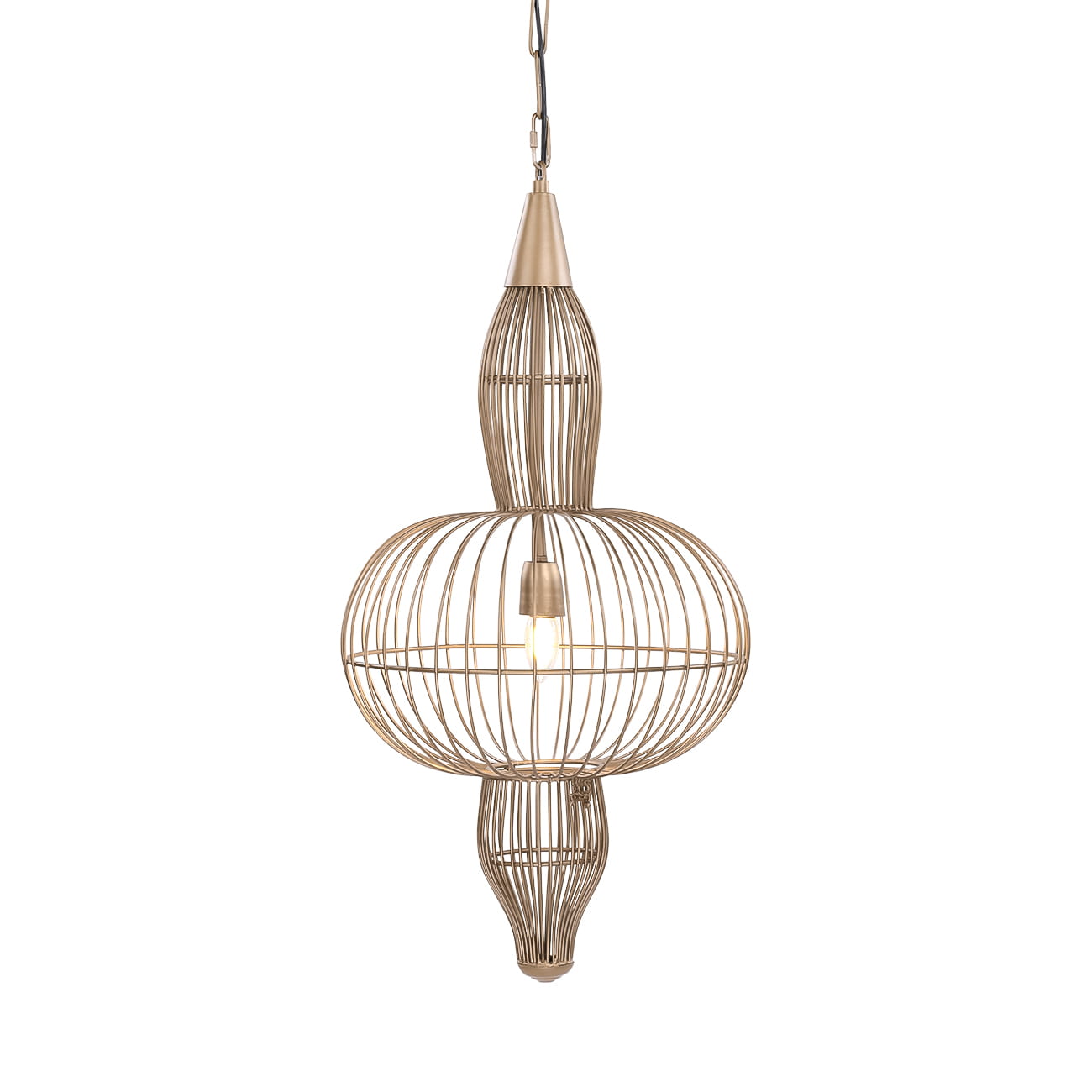 The Mira Orbit ceiling light is an elegant and modern gold pendant lamp designed for interiors where form, proportion and light truly matter. Its sculptural silhouette and open structure create a striking yet subtle decorative statement.