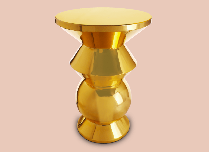 The majestic, modern Mist side table is made entirely of brass.