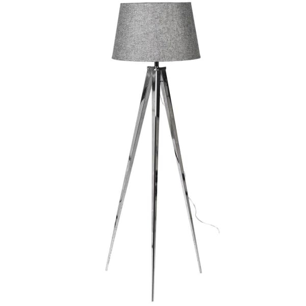 The grey linen lampshade balances the cool metallic sheen of the base, introducing softness and subtle warmth to the space. The lamp works beautifully as ambient lighting next to a sofa, armchair or reading corner.