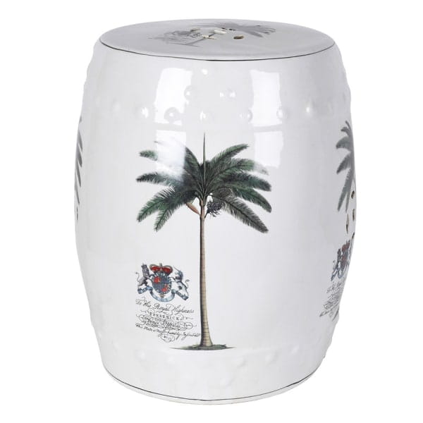 - Decorative ceramic stool with a palm motif