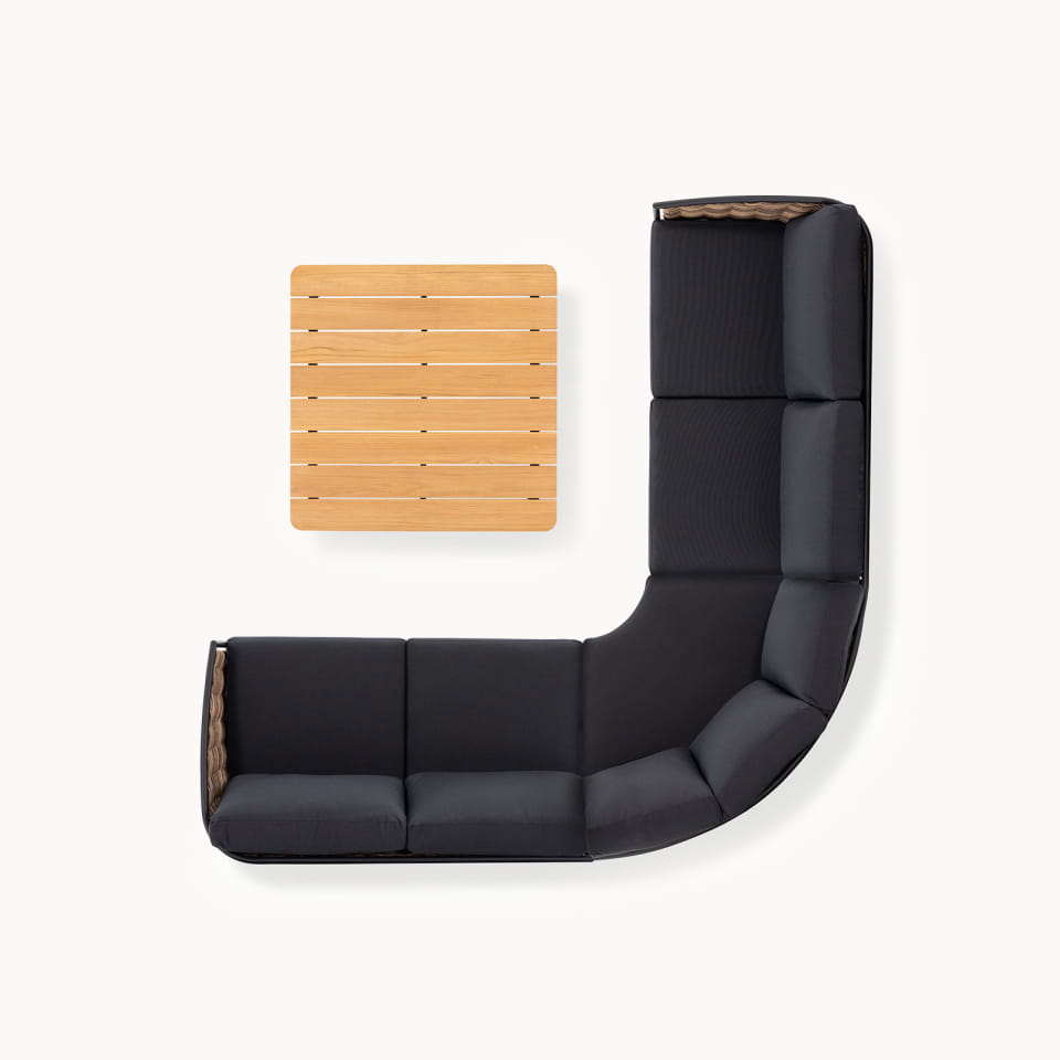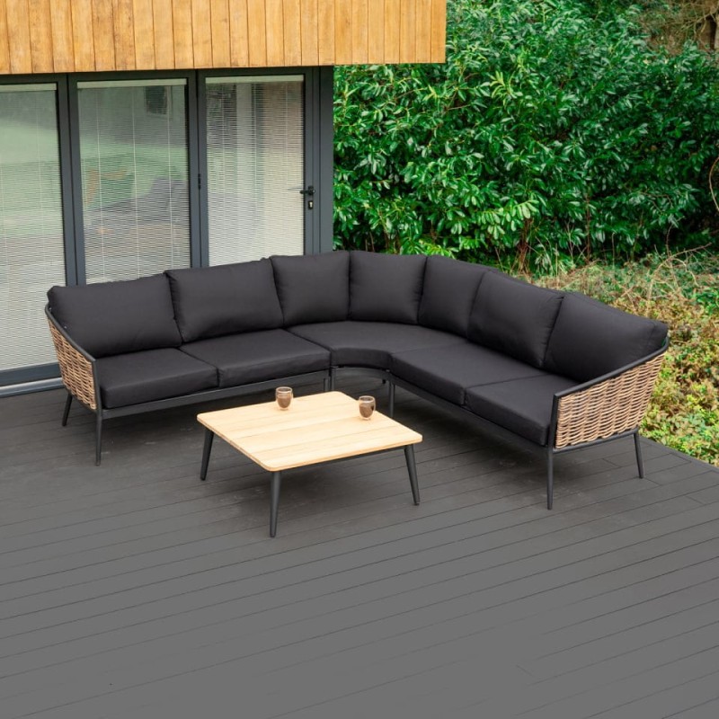 The Palomino L Corner Set is ideal for a modern patio, terrace or elegant garden seating area. The combination of aluminium, woven detailing and natural teak gives the furniture a light visual feel while still offering a stylish and substantial look. It is a set designed to help you create a comfortable space for relaxing, spending time with family and entertaining guests during the warmer months.