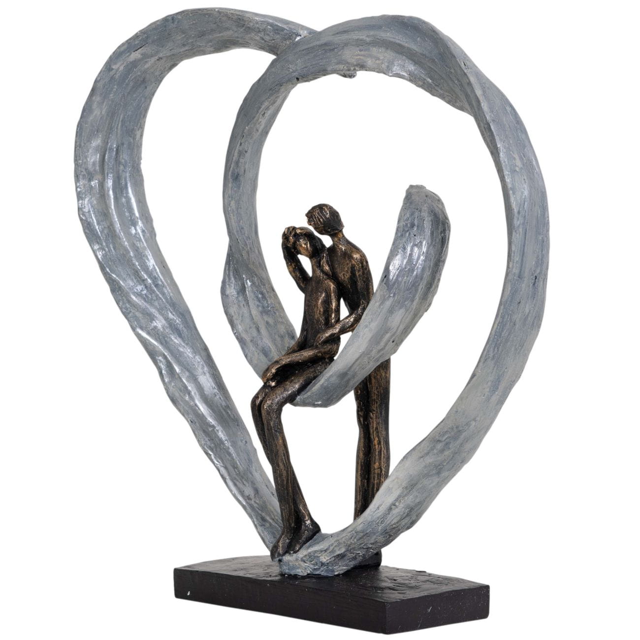 Portland Heart Sculpture – Romantic Couple in Love | Antique Bronze & Grey (35 cm)