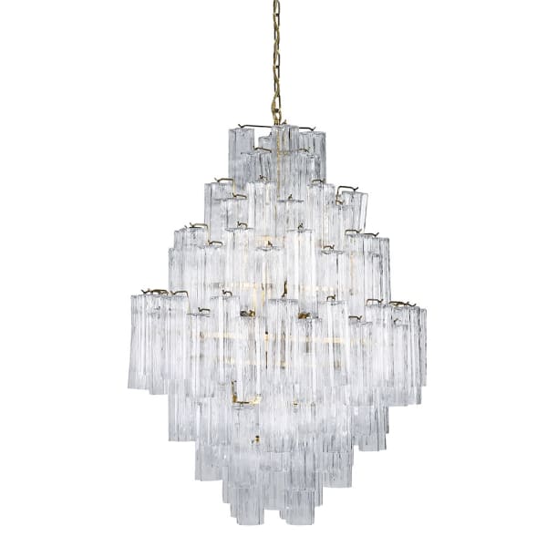 Portobello Large 110 cm Chandelier with Clear Glass Tubes and Gold Frame