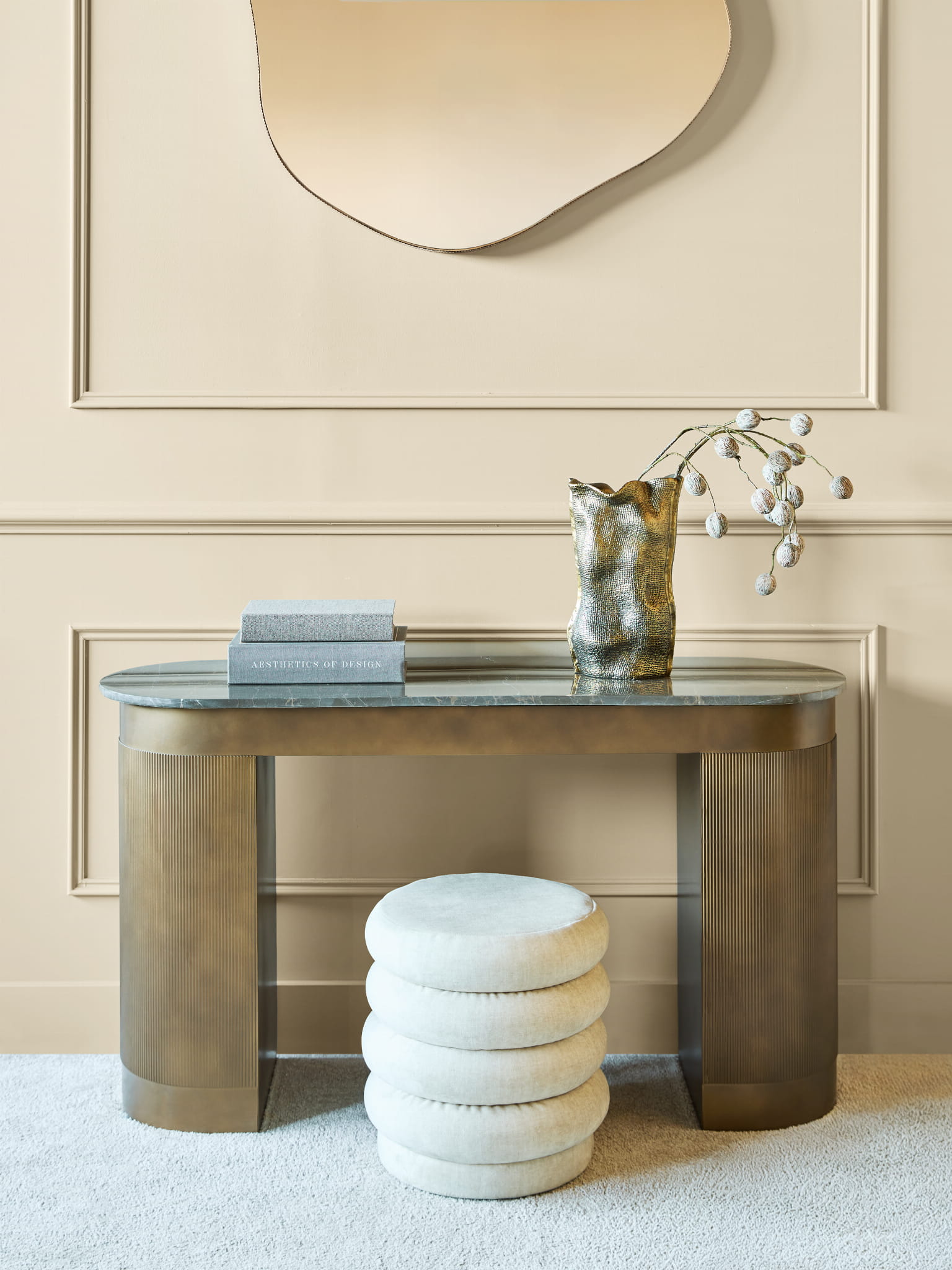 The Primrose desk works beautifully as a study desk, a home office desk, an elegant console-style desk or a refined work table for luxury interiors. Its versatile form suits contemporary, glamour, art deco and elegant settings.