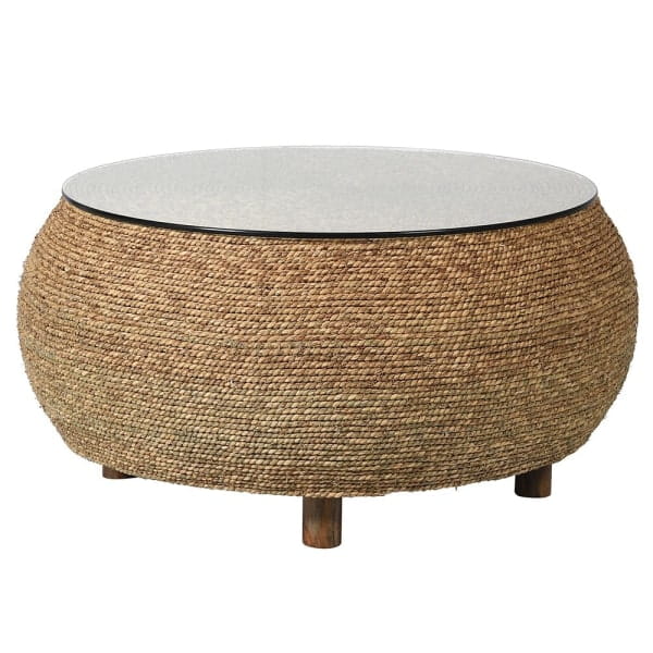 Toba Natural Round Coffee Table 86x43 cm seagrass base tempered glass top