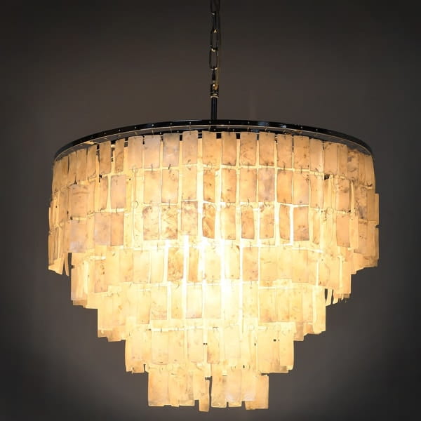 If you are looking for luxury lighting for the living room or dining room with a unique design and premium finish, this chandelier offers an exceptional balance of craftsmanship and decorative impact. The combination of natural shells, hand-finished construction and an elegant layered form ensures that it functions both as a light fitting and as a striking interior feature. It is a designer pendant chandelier created for spacious interiors where style, material and detail matter.