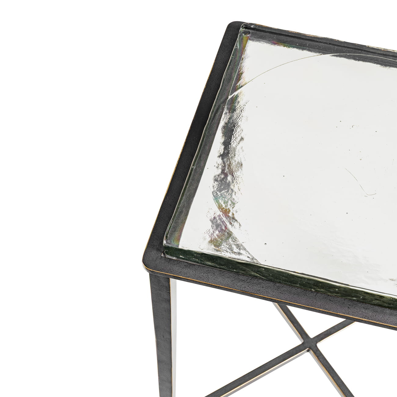 Featuring a thick 18 mm textured glass top with a subtle brick-like pattern, Stella catches the light beautifully with a delicate sheen. Each glass panel has a unique surface character, highlighting the artisanal quality and making every table one of a kind.